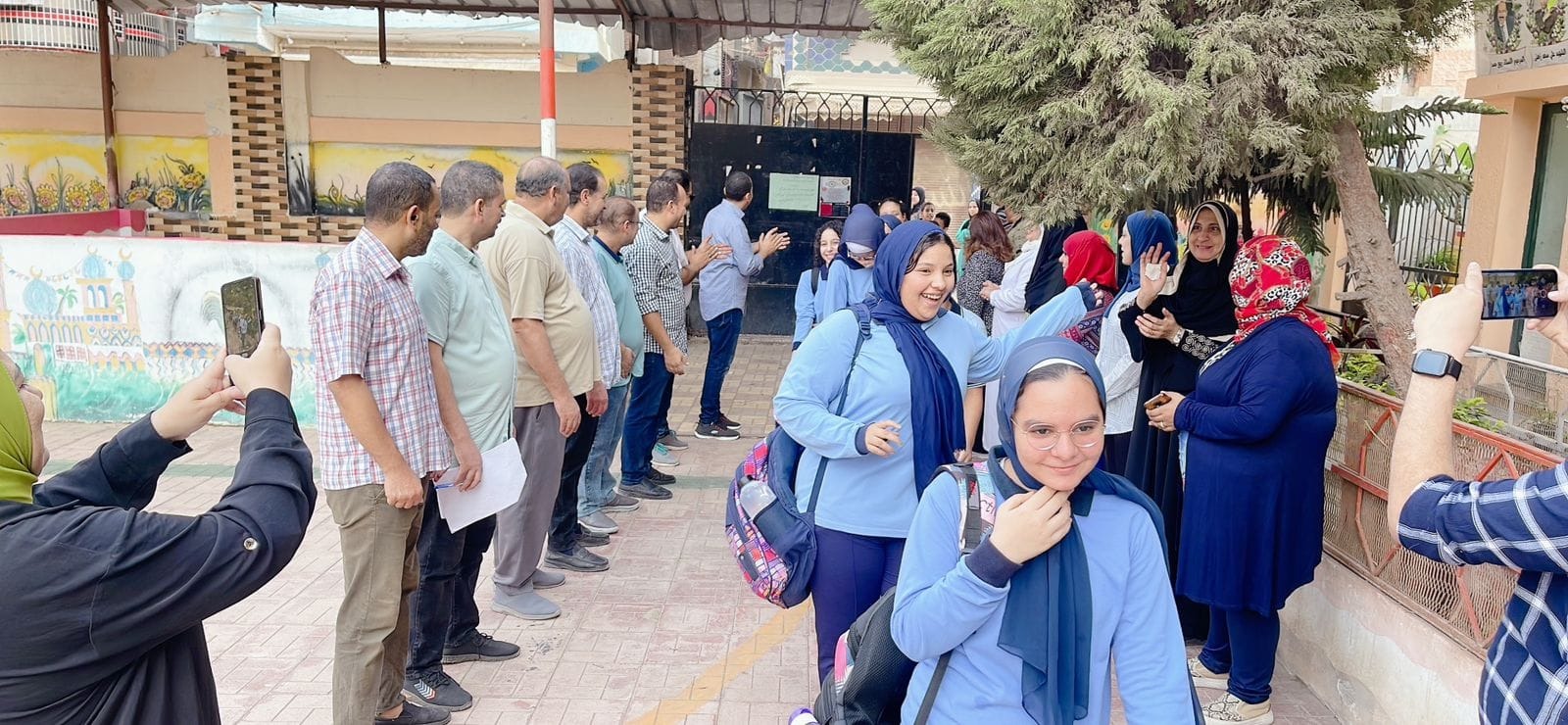 معلمون ينظمون ممرا شرفيا احتفاءً بالطلاب مع بدء الدراسة في كفر الشيخ| صور