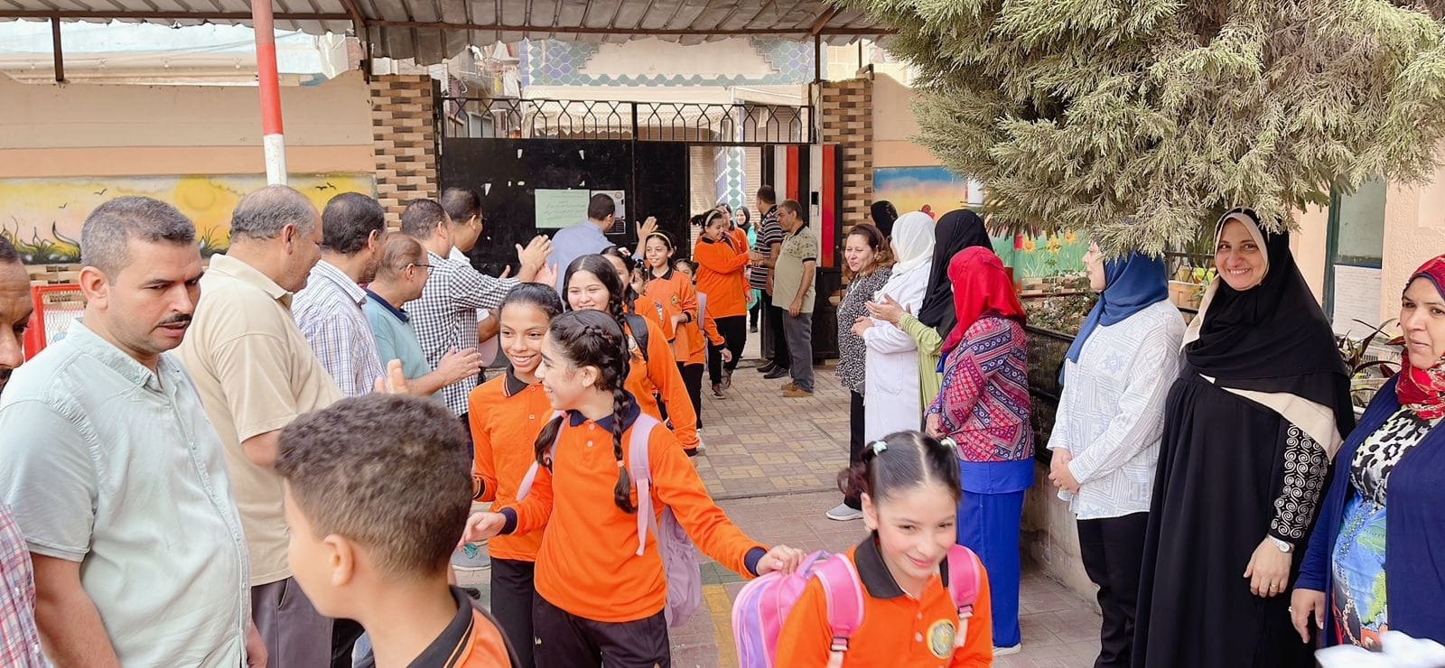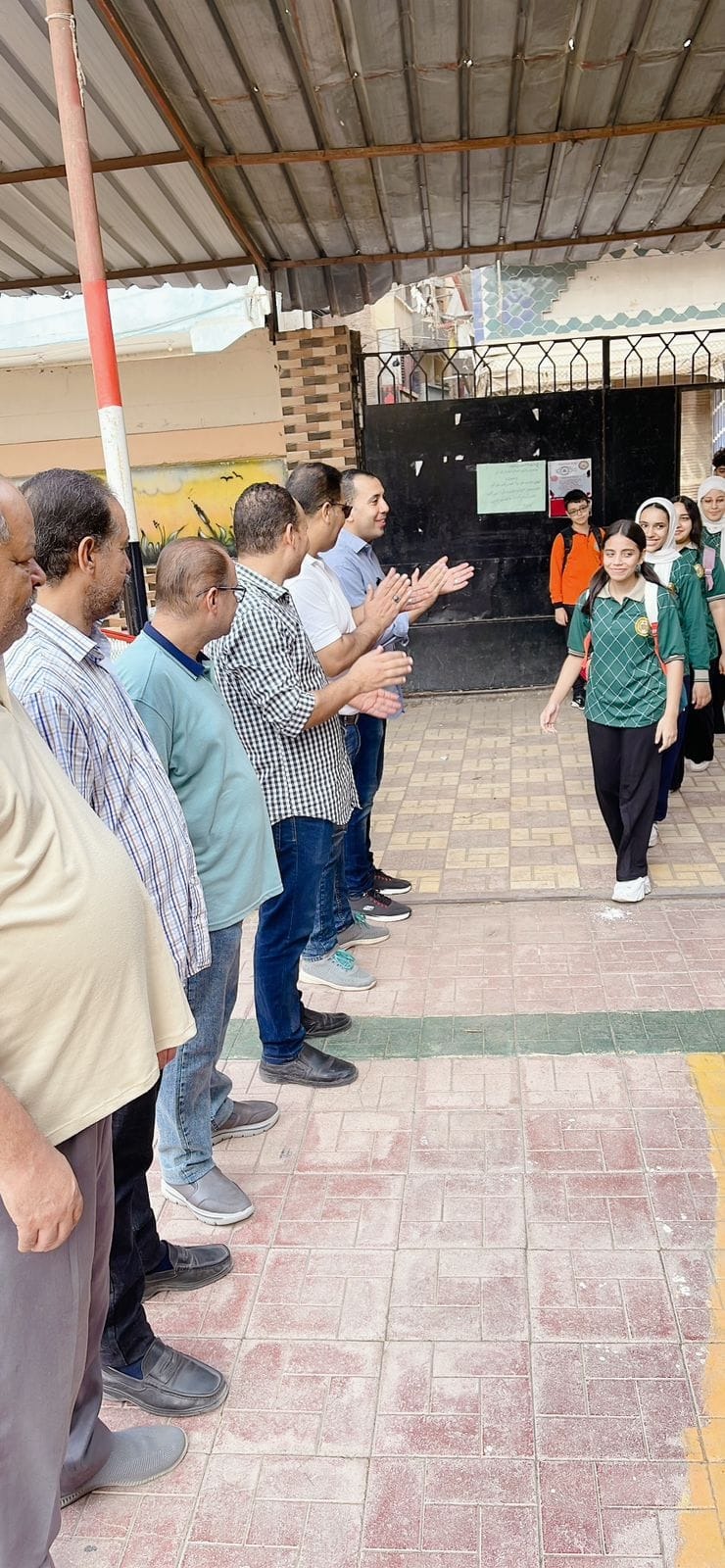 شهدت إحدى المدراس بإدارة دسوق التعليمية بمحافظة كفر الشيخ، استقبال معلمي المدرسة للطلاب بممر شرفي على بوابة المدرسة اليوم، مع بدء العام الدراسي الجديد.