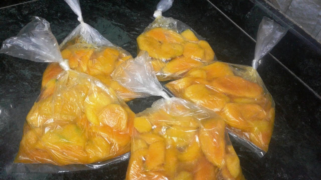 - توضع المانجو في أكياس ثم توضع في الفريزر.
