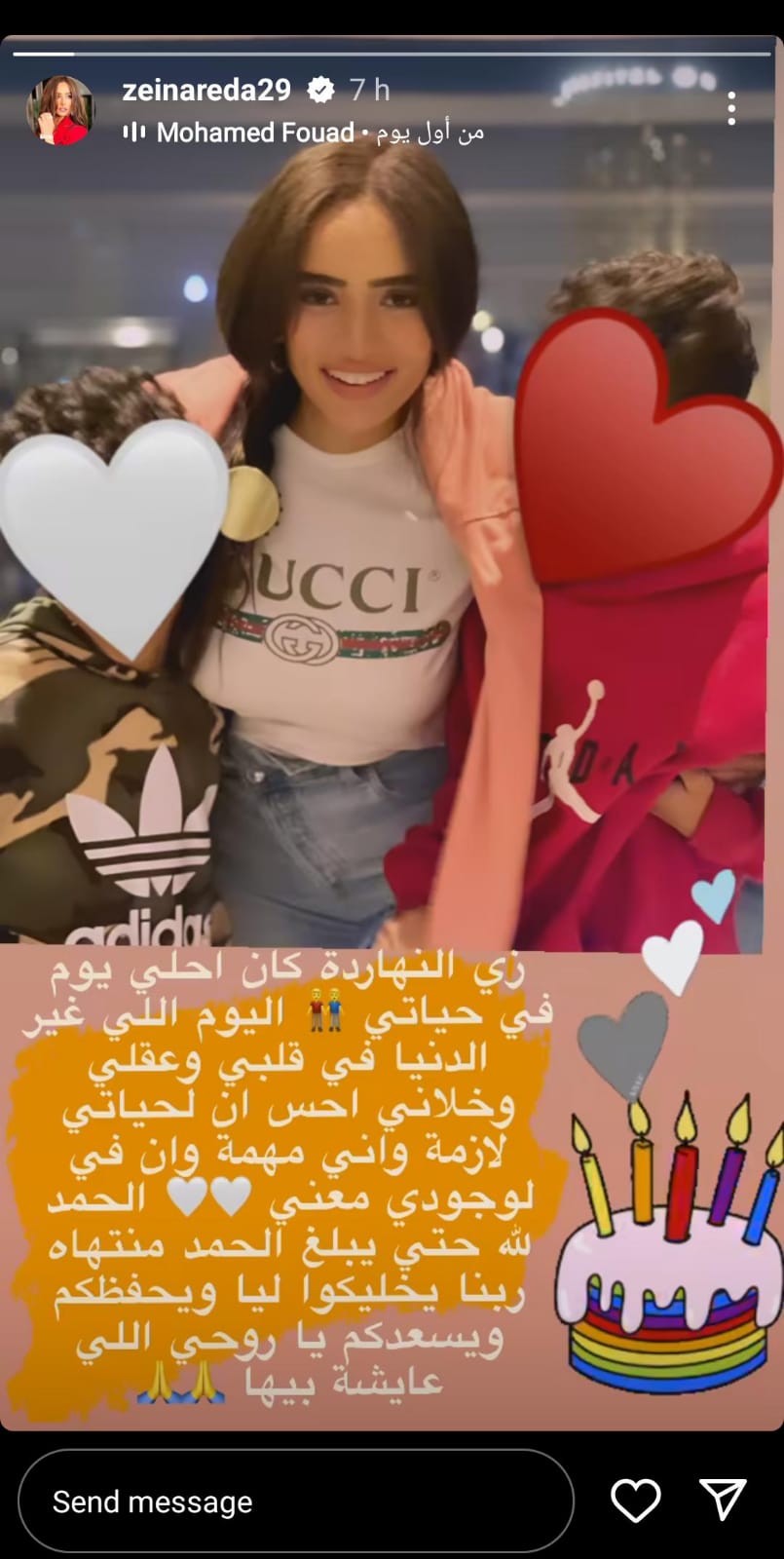 وتابعت زينة: الحمد لله حتى يبلغ الحمد منتهاه ربنا يخليكوا ليا ويحفظكم ويسعدكم يا روحي اللي عايشة بيها.