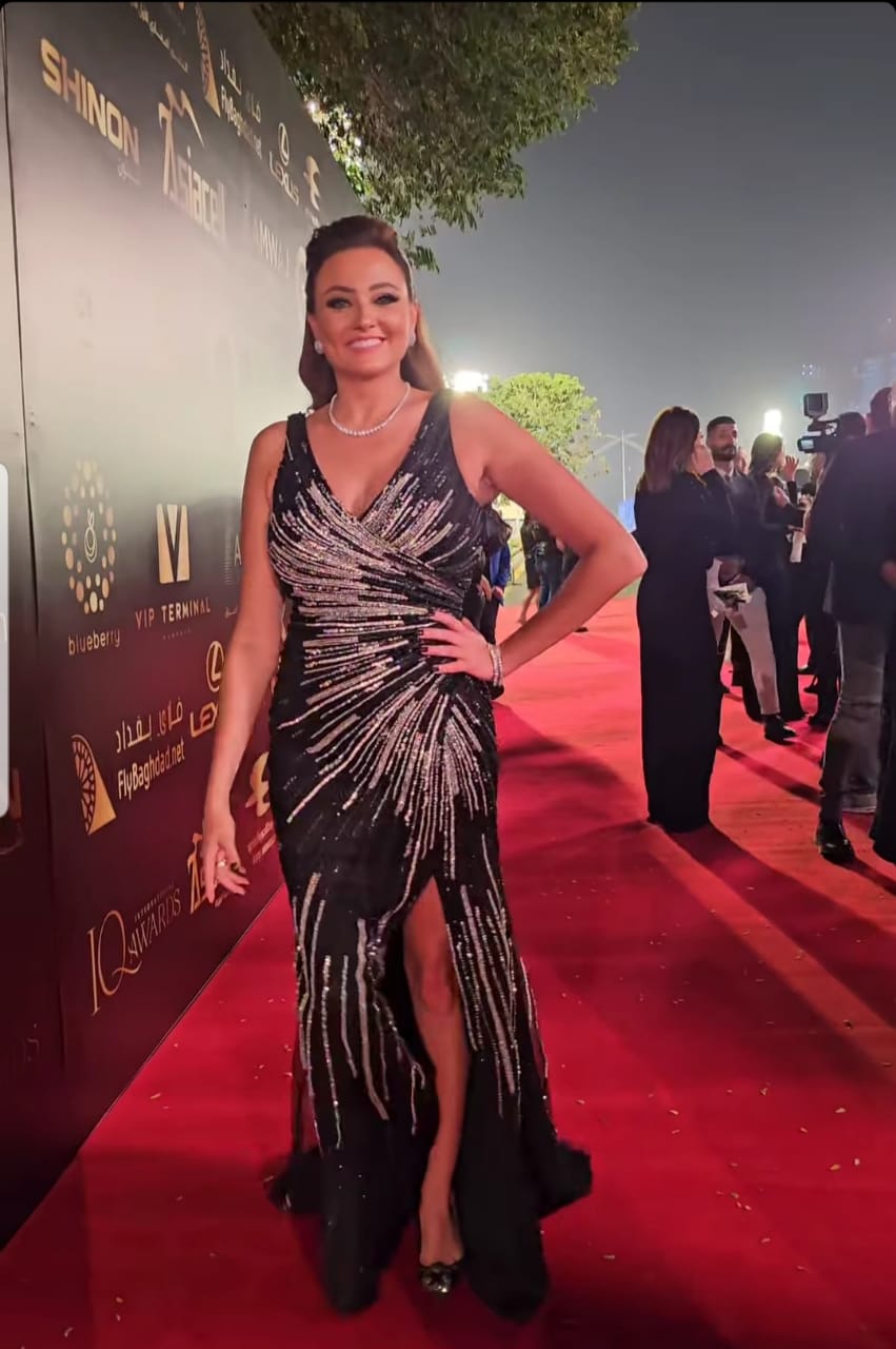 بالأسود اللامع.. بشرى تخطف الأنظار على السجادة الحمراء بمهرجان العراق الدولي