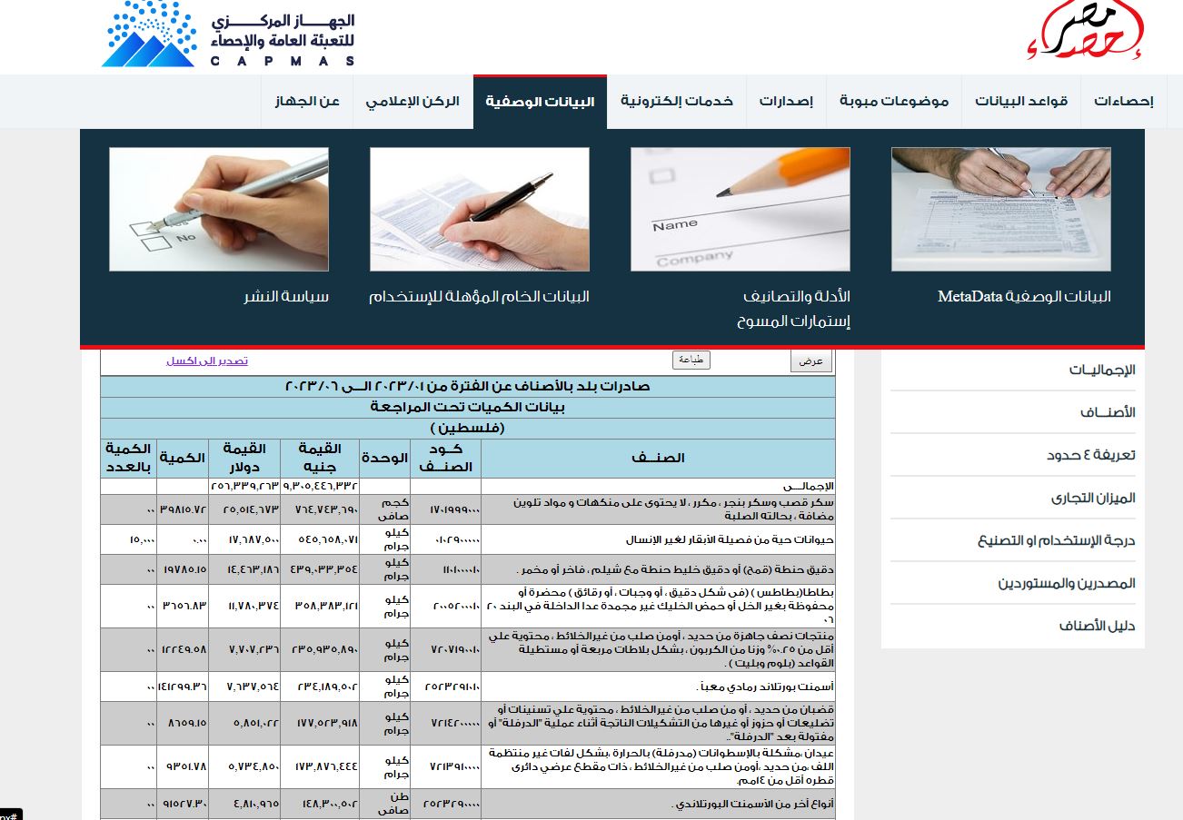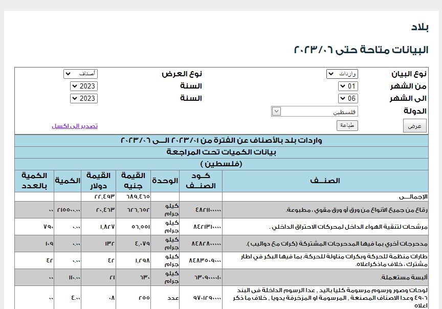 هذا في حين سجل معدل استيراد مصر من فلسطين نحو 22.4 مليون دولار خلال أول 6 أشهر من العام الحالي.