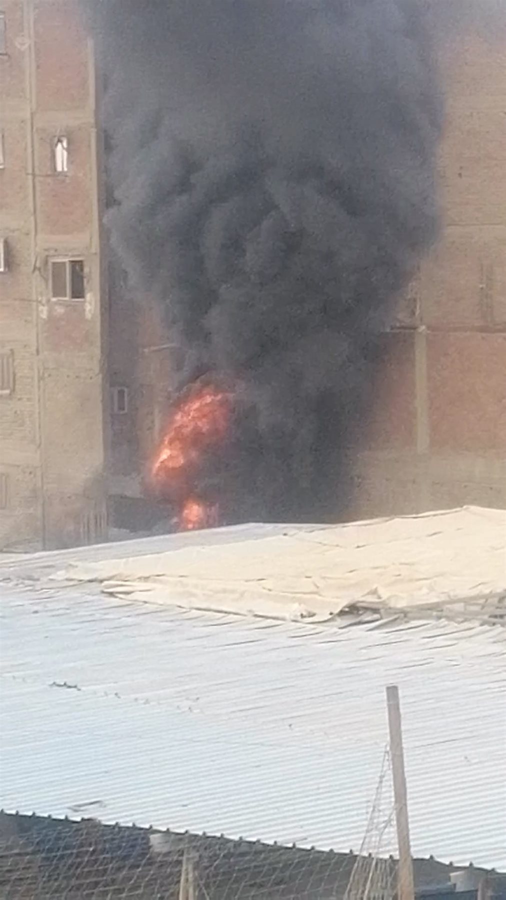 فيما تداول بعض رواد موقع التواصل الاجتماعي فيس بوك صورًا أثناء اشتعال الحريق، وتبين انبعاث الأدخنة بكثافة، نتيجة اشتعال النيران.