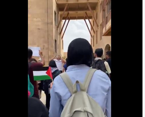 وخرج الطلاب في هتافات داعمة لحركة طوفان الأقصى في فلسطين ومناهضة للاحتلال الإسرائيلي وأفعاله.