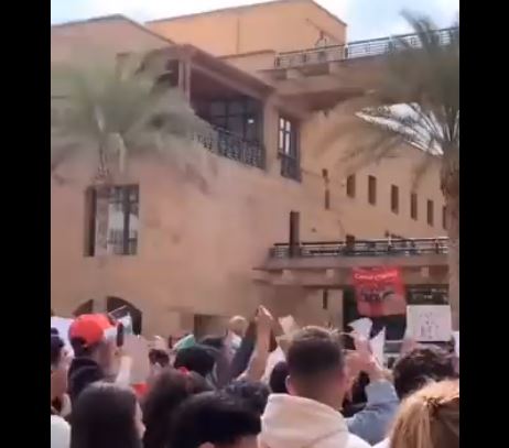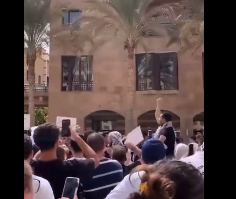 مظاهرات داعمة لطوفان الأقصى وفلسطين في الجامعة الأمريكية بالقاهرة