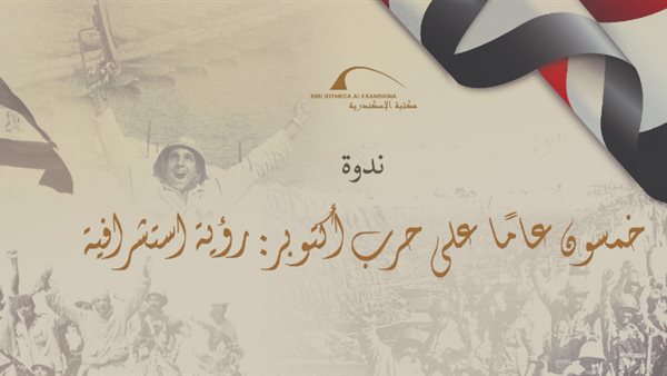 تنظم مكتبة الإسكندرية ندوة بعنوان خمسون عاما علي حرب أكتوبر... رؤية استشرافية، وذلك في تمام الساعة الخامسة من مساء الخميس الموافق 12 أكتوبر في بيت السناري بالقاهرة.