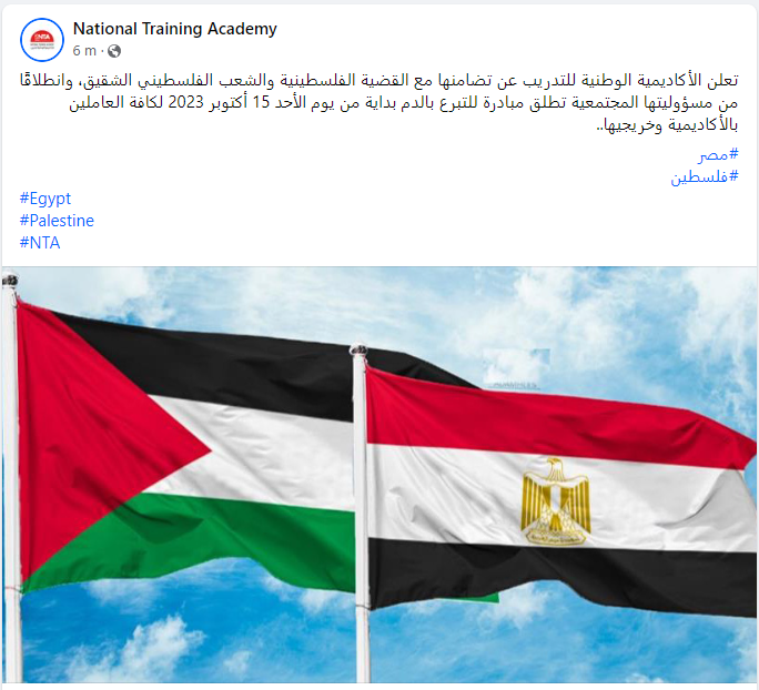 أعلنت الأكاديمية الوطنية للتدريب تضامنها مع القضية الفلسطينية والشعب الفلسطيني الشقيق.
