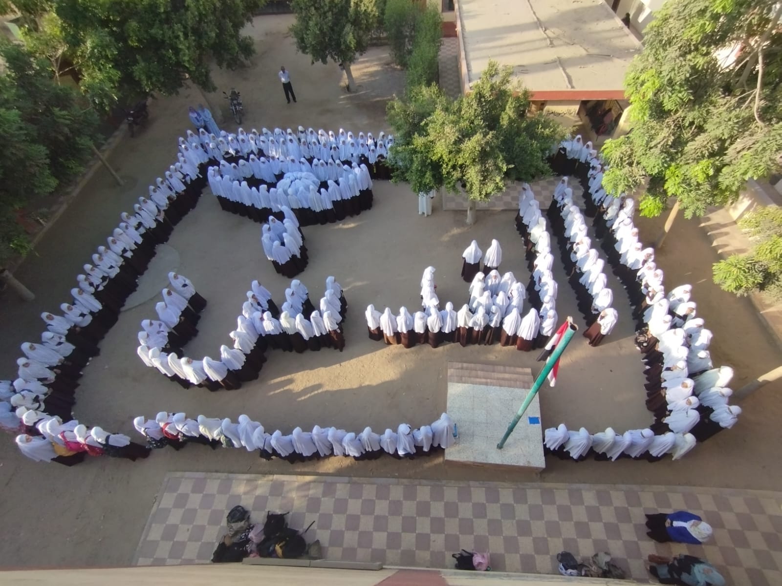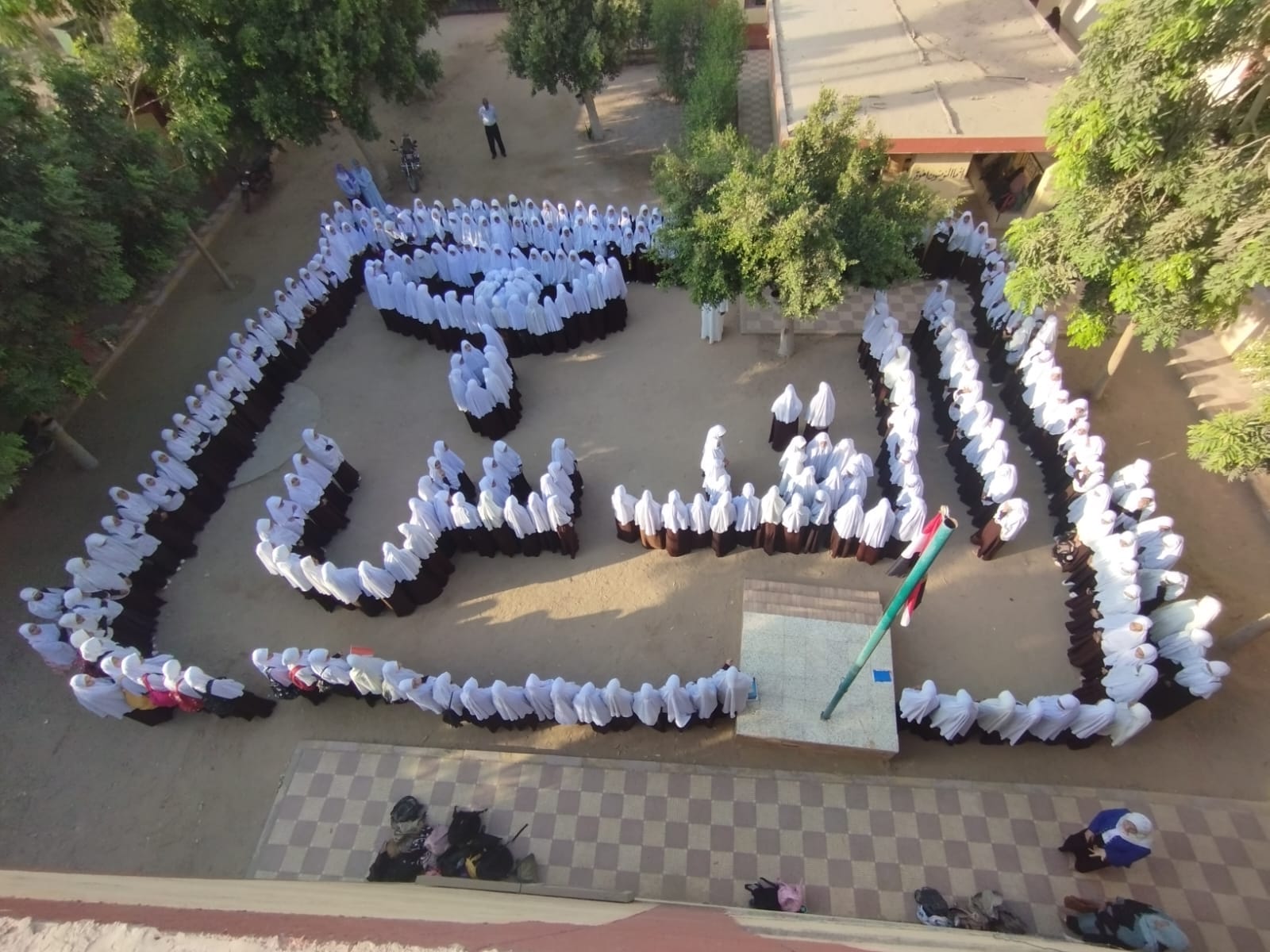 جسدت طالبات معهد فتيات أولاد نجم في نجع حمادي بقنا، اليوم السبت، بأجسادهن في طابور الصباح، العين الدامعة والقدس، في حين ألقت الطالبات القصائد والكلمات الواصفة لحال غزة والمسجد الأقصى ومسرى الرسول بكلمات أدمعت القلوب قبل العيون.