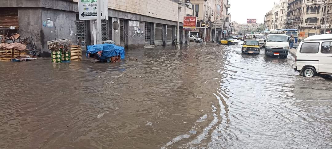 غرق شوارع بالإسكندرية بمياه الأمطار