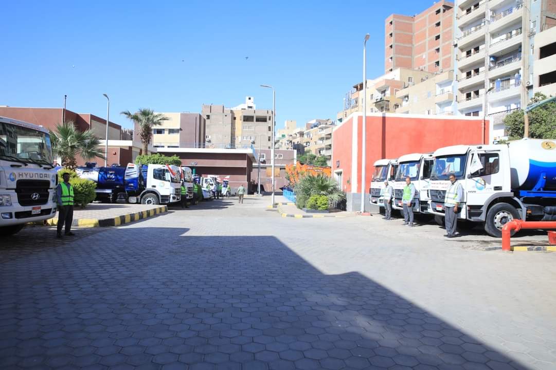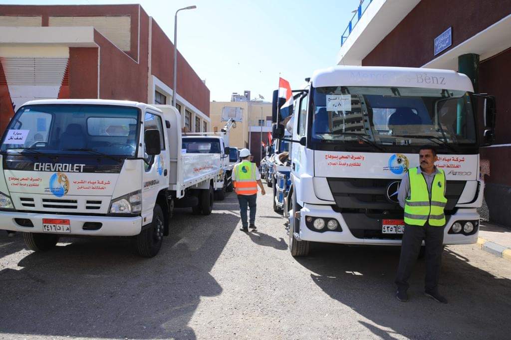 محافظ سوهاج يتفقد اصطفاف معدات شركة مياه الشرب والصرف الصحي