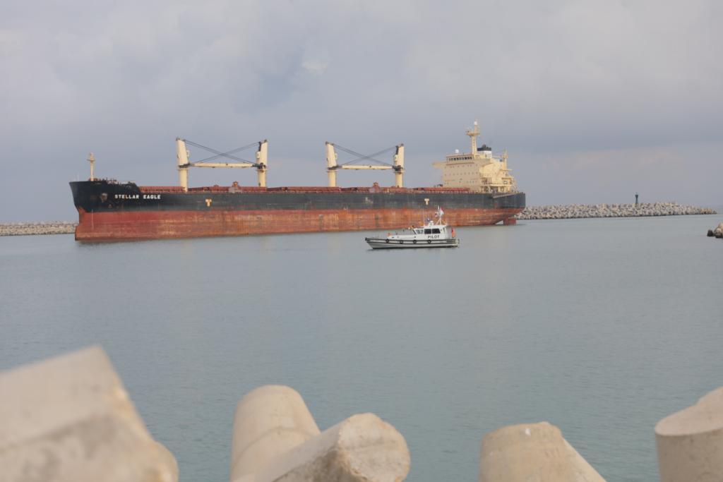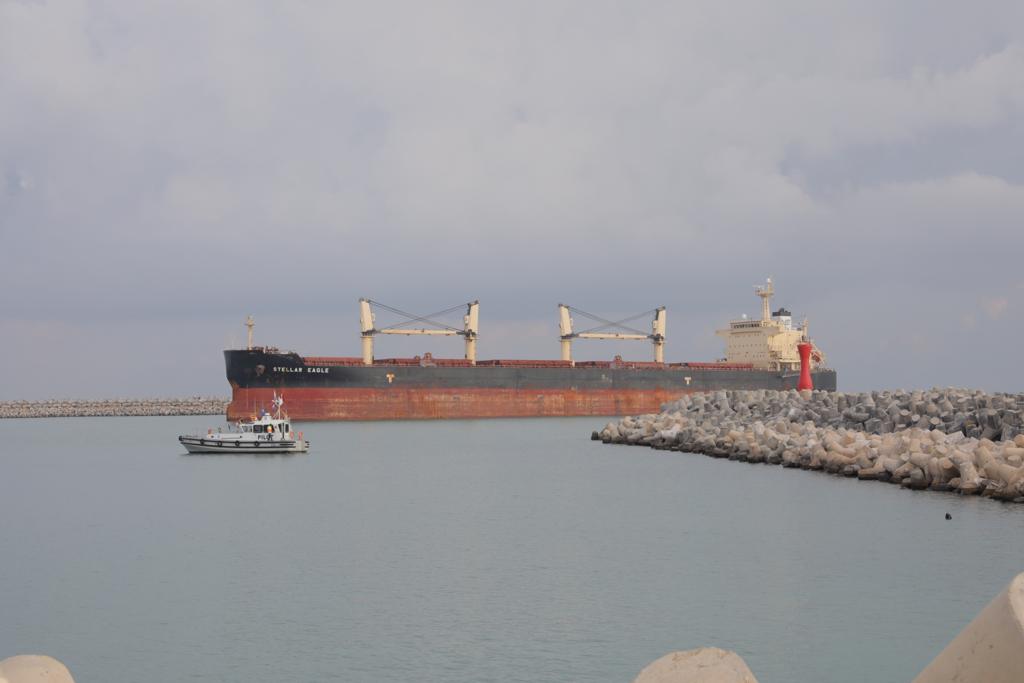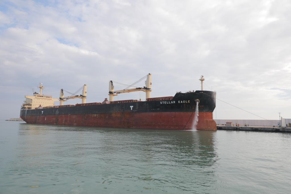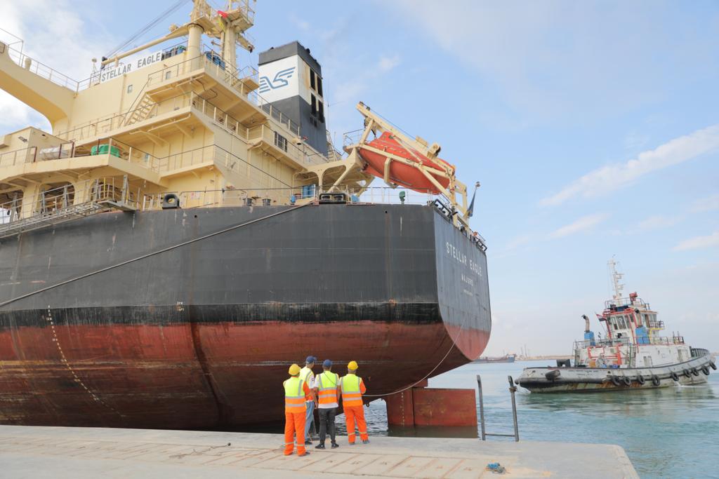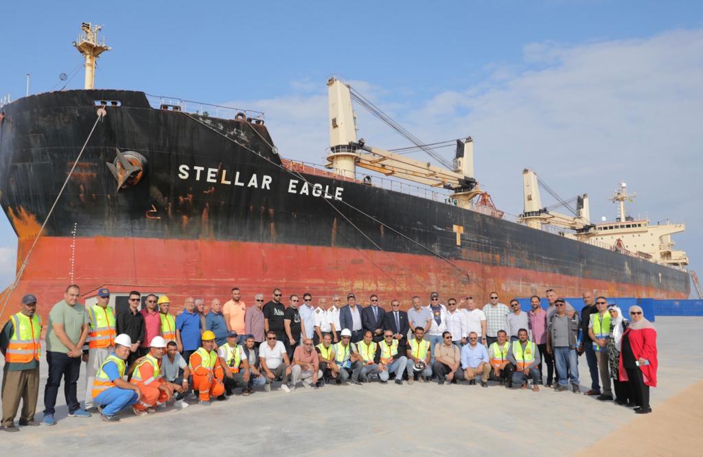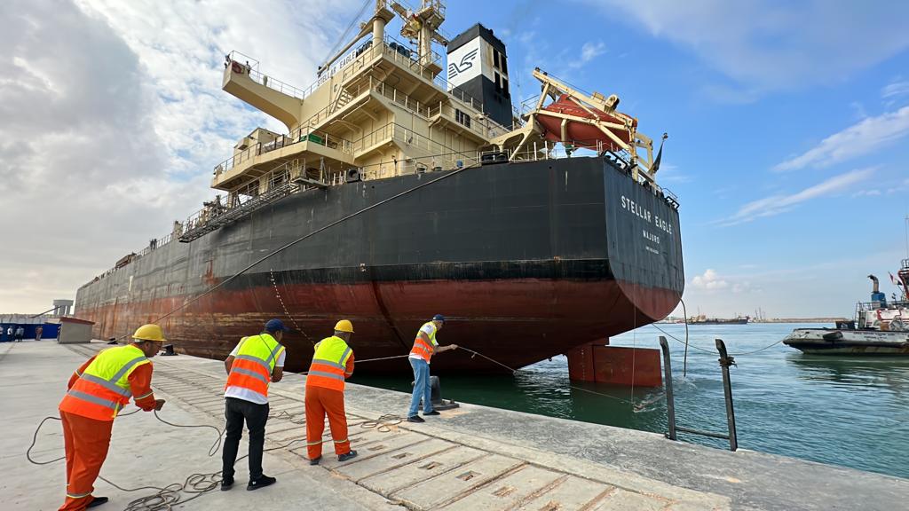 وتعتبر السفينة STELLAR EAGLE إحدى سفن بضائع الصب الجاف العملاقة، بحمولة إجمالية تصل إلى 55 ألف طن، وقامت إدارة ميناء العريش بالتنسيق مع التوكيل الملاحي شركة الريدي وشركة الشحن سينا سبيد؛ لترتيب إجراءات وصول السفينة وتراكيها برصيف "سيناء" الجديد.
