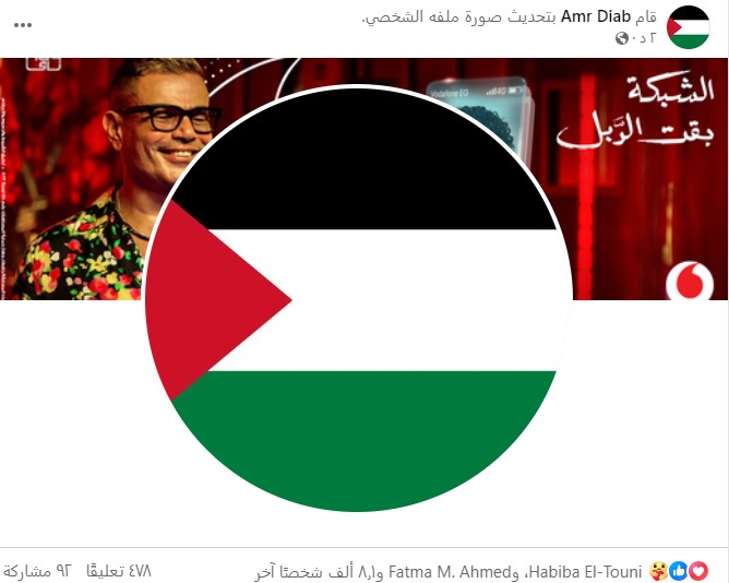 عمرو دياب يغير صورة صفحته الرسمية لعلم فلسطين تضامنًا مع أهالي غزة