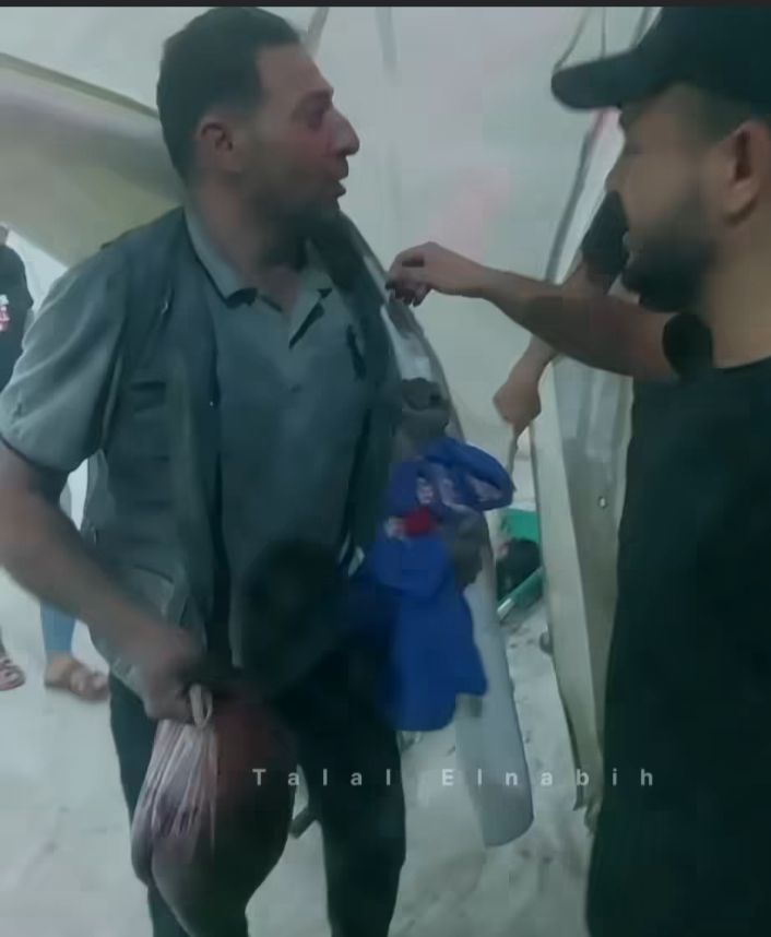 ومن أبرز اللقطات المفجعة التي شوهد أمس، هي صورة لأب يحمل في يده أشلاء أطفاله، باكيًا بعد استشهادهم جراء القصف الإسرائيلي، قائلًا: أولادي ماتوا كلهم يا ناس.