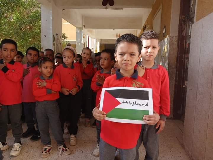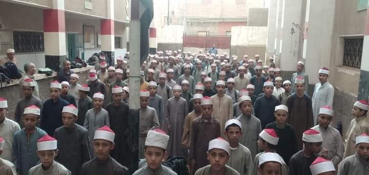 طلاب المعاهد الأزهرية ينظمون وقفة في طابور الصباح تضامنا مع الشعب الفلسطيني والأطفال في غزة