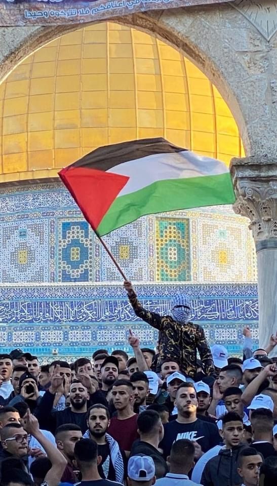 اكتسحت صور علم فلسطين منصات التواصل الاجتماعي فيسبوك وتويتر وإنستجرام والعديد من التطبيقات الأخرى، لتعبر عن حالة تضامن عالمية مع الشعب الفلسطيني المحتل وتعكس روح العزيمة والجلد للفلسطينين، كما تندد بجرائم الاحتلال الاسرائيلي وتعمده استهداف المدنيين والاطفال في حربه ضد حماس ردًا على نجاح استهداف مناطق ونقاط قوة تخص الإسرائيليين في تل أبيب ويافا.