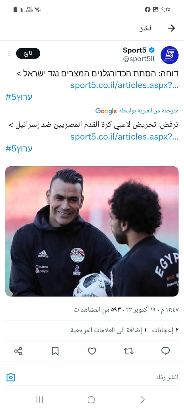 وهاجمت شبكة سبورت 5 الإسرائيلية، لاعب منتخبنا الوطني محمد صلاح بعد نشر فيديو دعم لفلسطين عبر حساباته الرسمية على موقع التواصل الاجتماعي، حيث وصفت حديثه بأنه تحرض كبير ضد إسرائيل.
