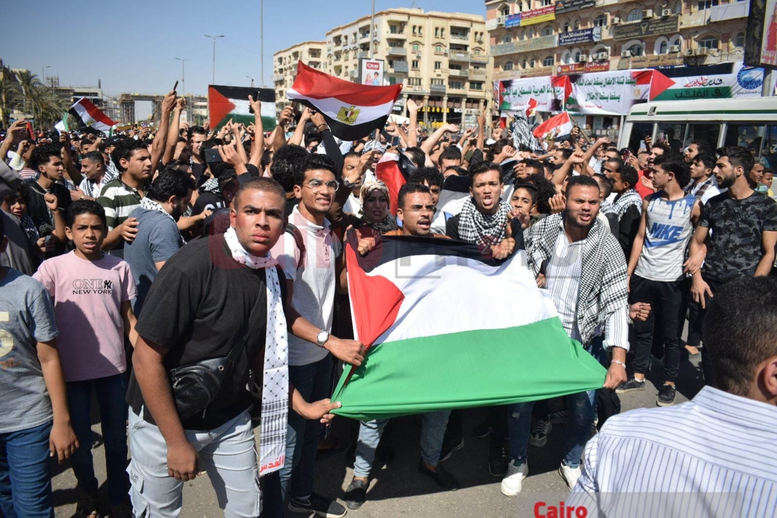 شهد ميدان الحصري بمدينة 6 أكتوبر، مسيرة حاشدة لدعم الدولة المصرية في قراراتها الأخيرة بشأن أحداث غزة، حيث حمل المتظاهرون الأعلام والهتافات مرتدين وشاح فلسطين.