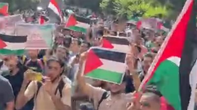 وفي مشهد مهيب خرج طلاب جامعة عين شمس في مظاهرة، للتنديد بالعدوان الغاشم وما فعله في الإخوة الفلسطينيين على مدار الأيام الماضية، من قتل وقصف وتفجير، ولدعم الموقف الرافض لتهجير الفلسطينيين من أراضيهم إلى سيناء.