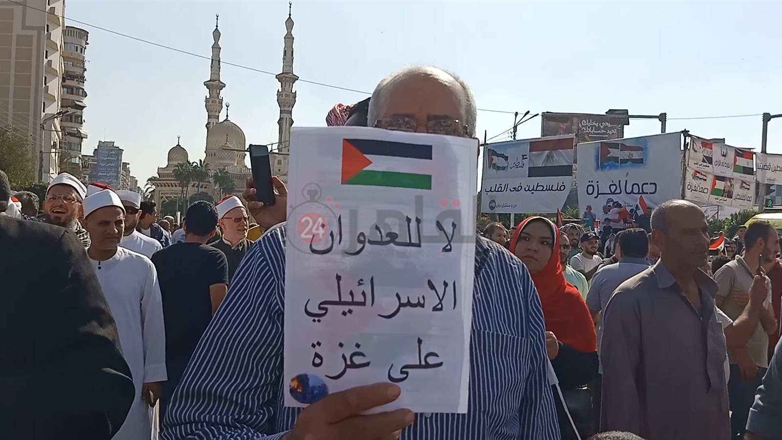 حشود كبيرة في ميدان أم كلثوم بالمنصورة للتنديد بالعدوان الإسرائيلي على غزة