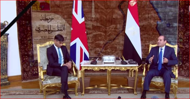 ويتواجد رئيس الوزراء البريطاني ريشي سوناك، حاليا في مصر، لبحث الوضع في إسرائيل وغزة، بعد انتهاء زيارته إلى تل أبيب، والتي بحث خلالها الوضع مع بنيامين نتنياهو رئيس وزراء إسرائيل.