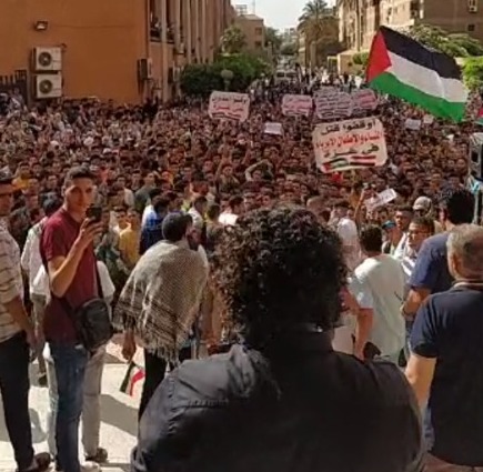 طلاب جامعة بنها ينظمون وقفة احتجاجية لدعم أهل غزة