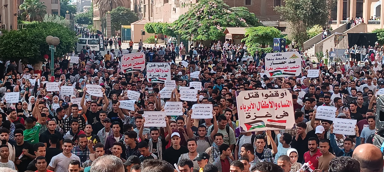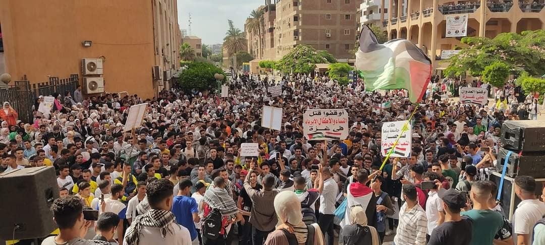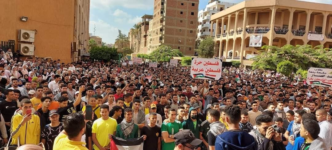 نظم عدد كبير من طلاب جامعة بنها، وقفة احتجاجية داخل الحرم الجامعي، وذلك تضامنًا مع أهالي غزة ودعم صمودهم ضد الاحتلال الإسرائيلي.