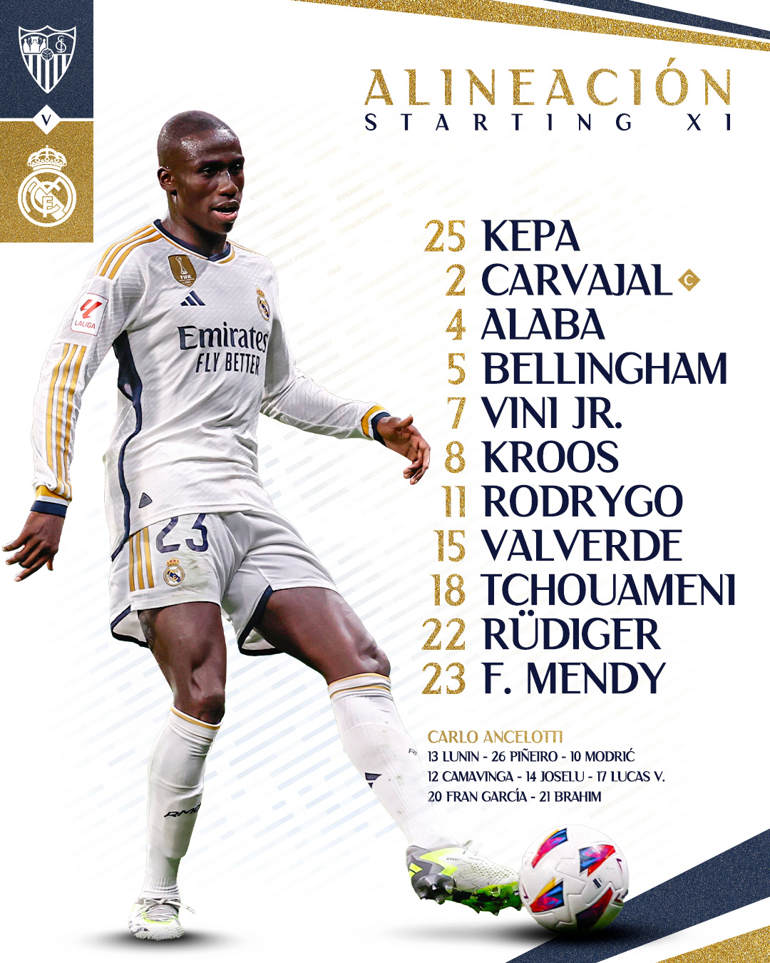 - خط الهجوم: بيلينجهام، رودريجو، فينسيوس جونيور.