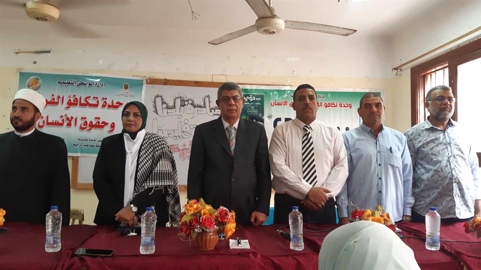 ويجيء ذلك تحت رعاية الدكتور رضا حجازي وزير التربية والتعليم والتعليم الفني، والدكتور محمد حسن رئيس الوحدة بالإدارة المركزية لشئون مكتب الوزير، والدكتور محمد عبد التواب وكيل وزارة التربية والتعليم ببني سويف، وبحضور الدكتورة عائشة عبد الرحيم رئيس وحدة تكافؤ الفرص وحقوق الإنسان بمديرية التربية والتعليم، ونبيل حميد مدير إدارة الواسطي التعليمية، محمد عبد العظيم مدير المدرسة، الشيخ أحمد أبو السعود خطيب بالأوقاف، مدحت أحمد سيد موجه تاريخ، سحر عبدالحليم منسقة الوحدة بالإدارة، أحمد الشيمي مدير إدارة العلاقات العامة بالإدارة.