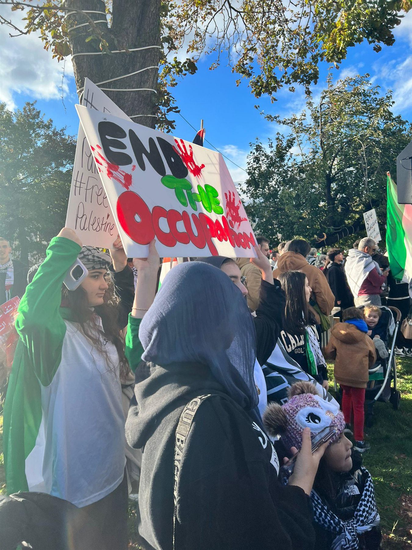 وأوضحت إيمان وهمان في تصريحات خاصة لـ القاهرة 24، أن المظاهرات شارك فيها العديد من الشباب المصري من مختلف الأعمار، من طلبة جامعات ومدارس رافعين علم مصر بجانب علم فلسطين، تحديدًا في منطقة ستاين واي، موضحة أن المظاهرات تستمر لساعات طويلة قد تصل إلى 4 ساعات.