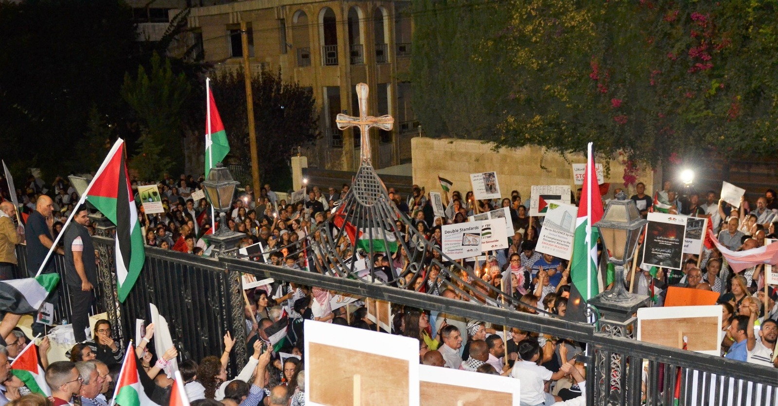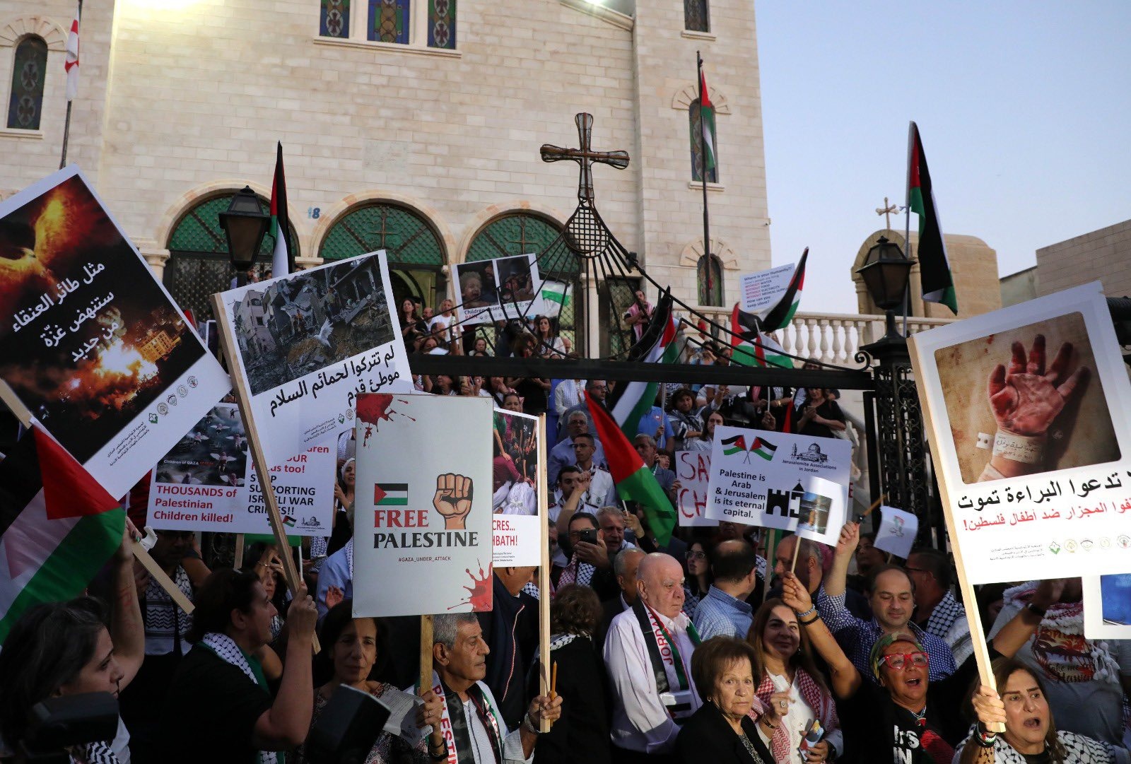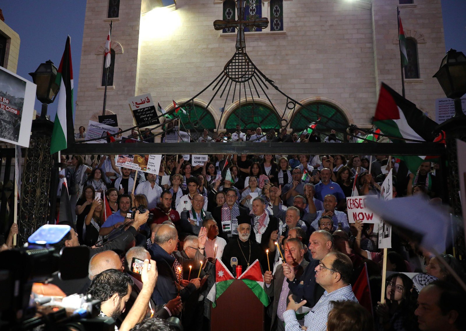 بالدموع والشموع.. المؤسسات الأرثوذكسية في الأردن تنظم وقفة تضامنية مع فلسطين | صور