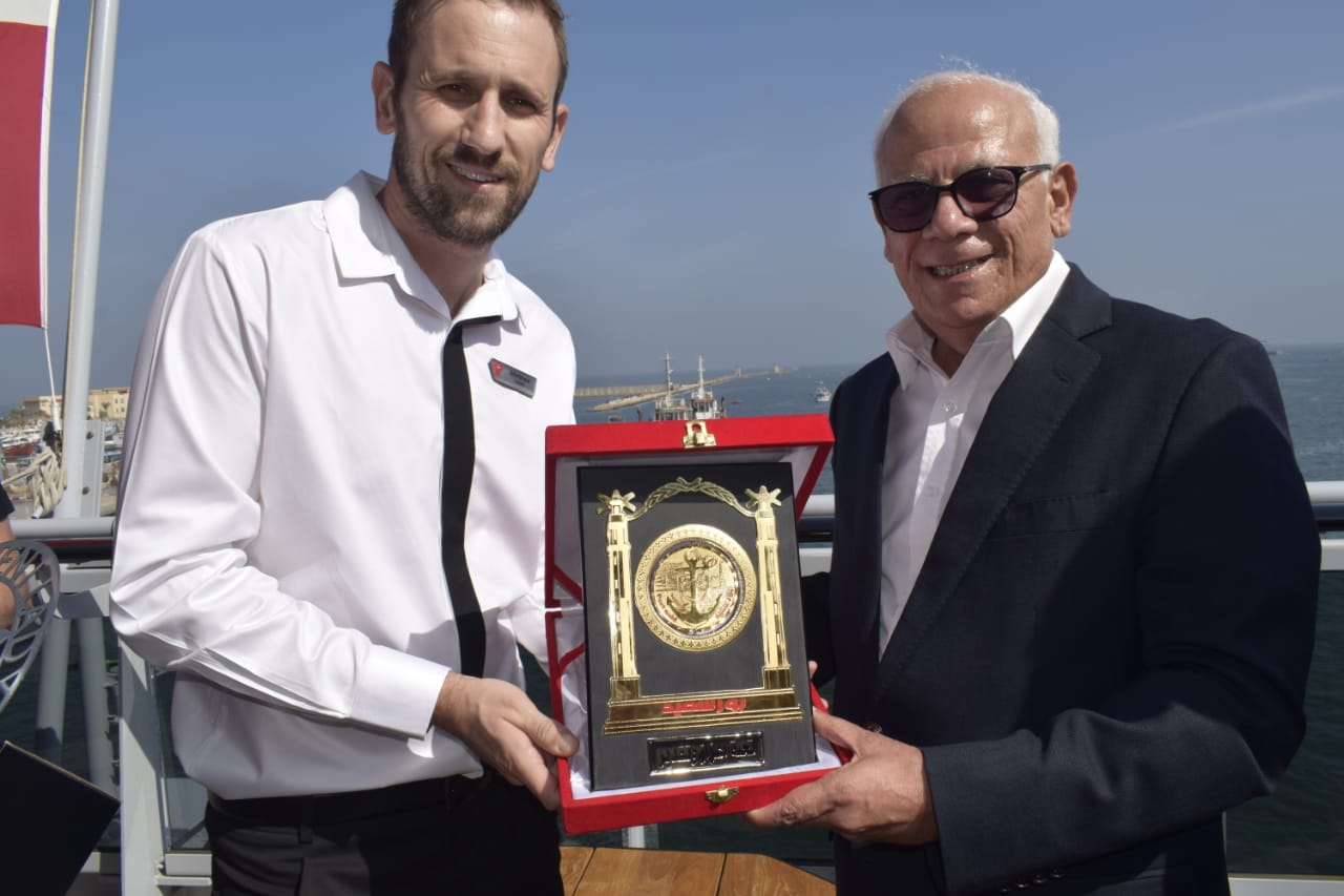 وخلال جولته بالسفينة، تبادل محافظ بورسعيد الدروع مع قبطان السفينة، لتوطيد العلاقات بين بورسعيد والجانب الأجنبي، وكان الميناء قد استقبل فى الأيام الماضية عدد من السفن السياحية العملاقة مما يعد هذا النشاط للميناء دليلًا على عودة السياحة بالمنطقة وجاهزيتها لاستقبال هذا النوع من السفن واتخاذ كافة الاستعدادات اللازمة بتقديم التسهيلات للسفن السياحية واليخوت بالموانئ المصرية، والتي تدل على ثقة المسارات السياحية في موانئ المنطقة ومعدلات الأمان بها.
