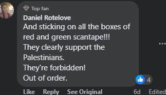 وأضاف غيرهم: يلصقون على جميع الصناديق الشريط الأحمر والأخضر!!! ومن الواضح أنهم يدعمون الفلسطينيين. إنهم ممنوعون! لن نطلب منهم.