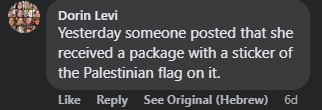 وقالت أخرى: نشرت إحدى الأشخاص بالأمس أنها استلمت طردًا عليه ملصق العلم الفلسطيني.