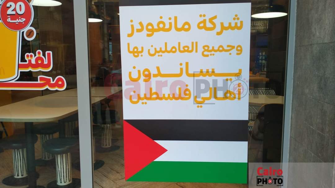 وكتب فرع ماكدونالدز المنوفية على الباب شركة مانفودز وجميع العاملين بها يساندون الشعب الفلسطيني، وذلك بعد حملات المقاطعة الواسعة التي تسببت في عزوف الكثيرين من المواطنين في مصر والوطن العربي.
