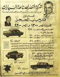 ووفقا لإعلان منشور بأحد الجرائد يرجع تاريخه إلى عام 1962، عن فتح باب الحجز لشراء سيارات «نصر» موديل نصر 1300 ونصر 2300، اعتبارا من 24 مارس من نفس العام على أن يبدأ التسليم في الـ23 من يونيو، وذلك بمناسبة العيد العاشر للثورة المباركة.
