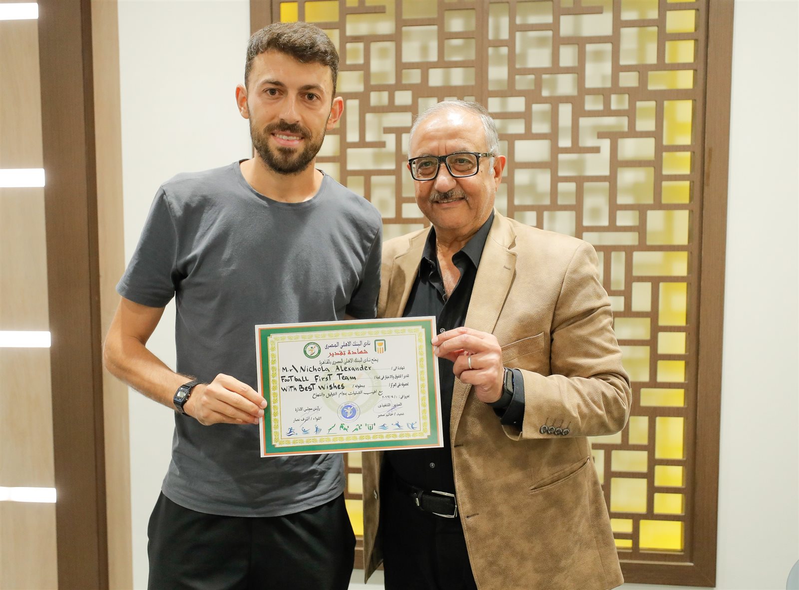 إدارة البنك الأهلي تكرم بابافاسيليو وجهازه المعاون