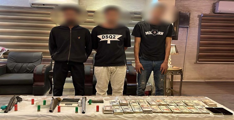 وعقب تقنين الإجراءات تم ضبطهم وبحوزتهم كمية من مخدري الحشيش والهيروين - و3 فرد محلي - وطلقات لذات العيار - ومبلغ مالي - وميزان حساس.