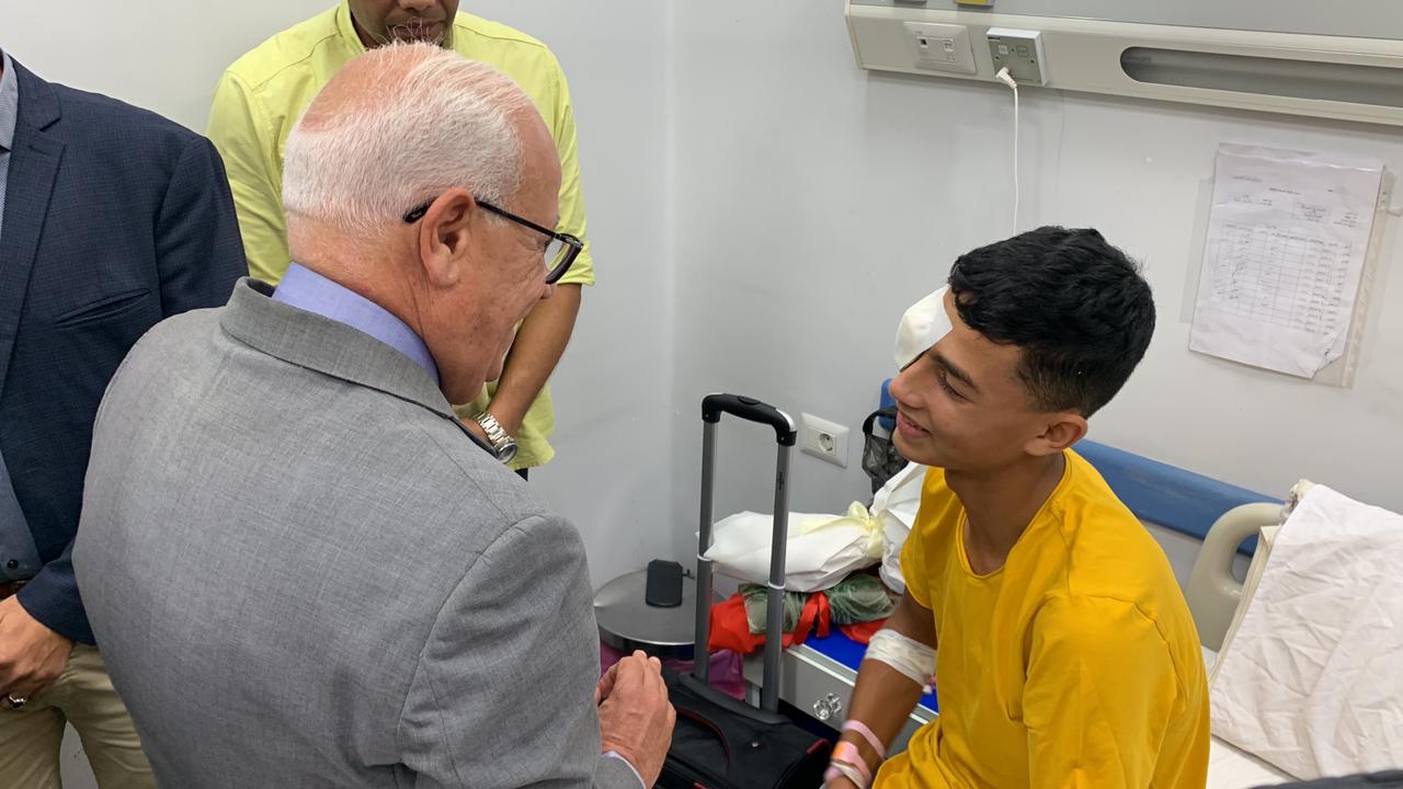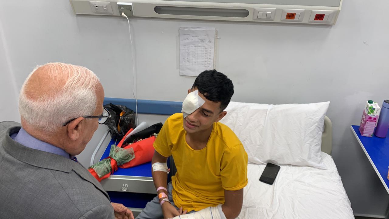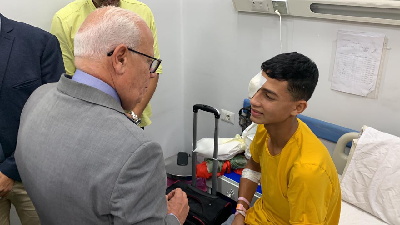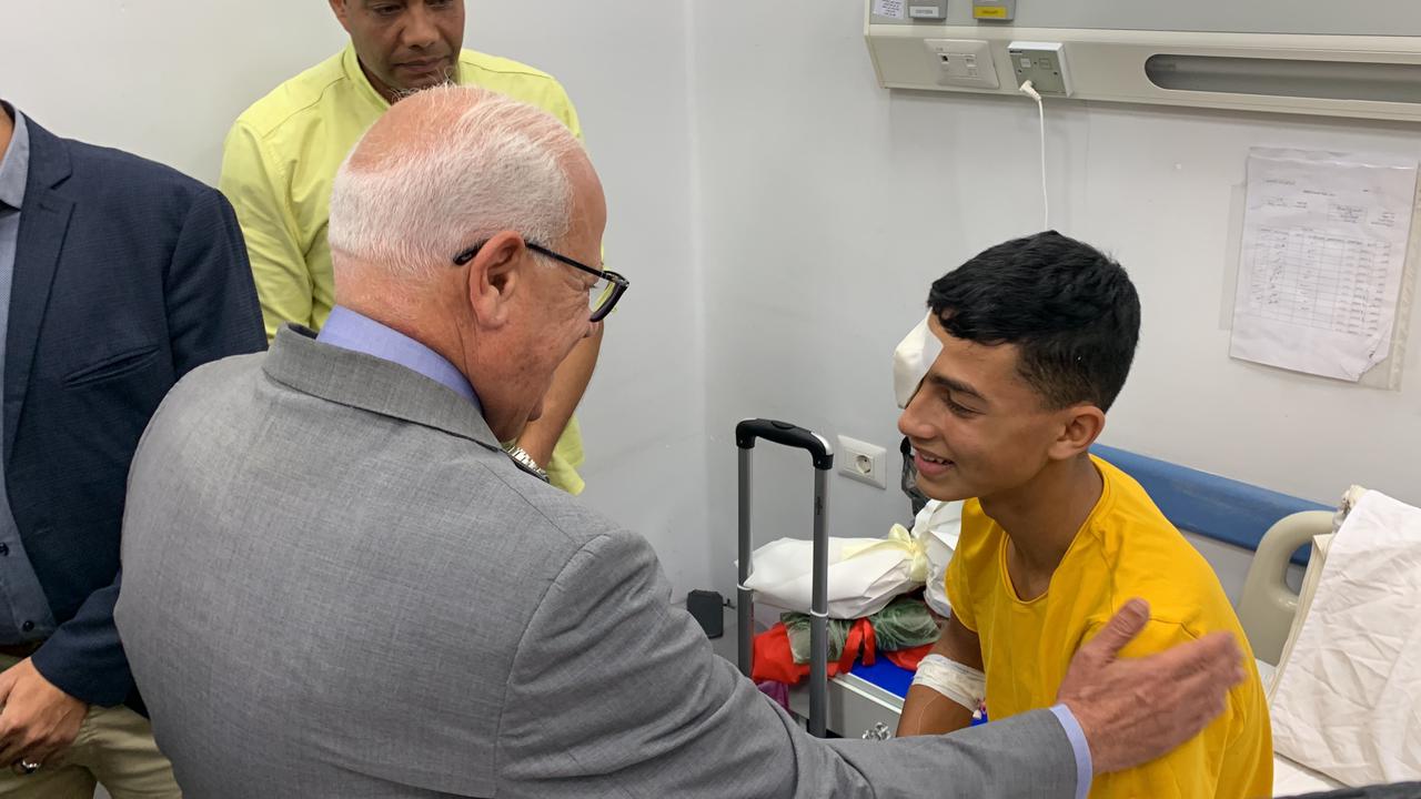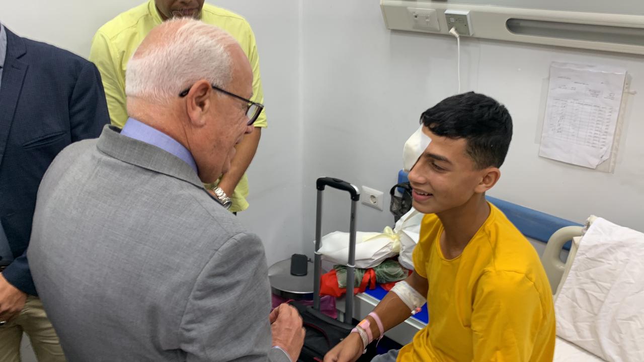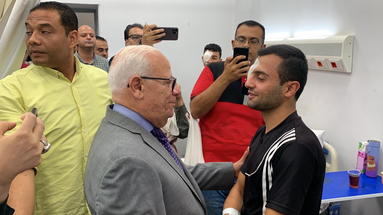 محافظ بورسعيد يزور مصابي غزة بمستشفى الرمد التخصصي.. ويداعب أحد لاعبي الكرة: تعالى عندنا في المصري | صور