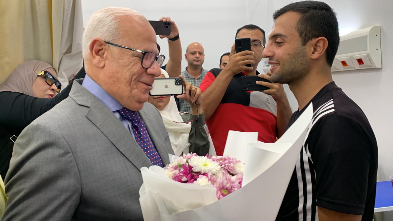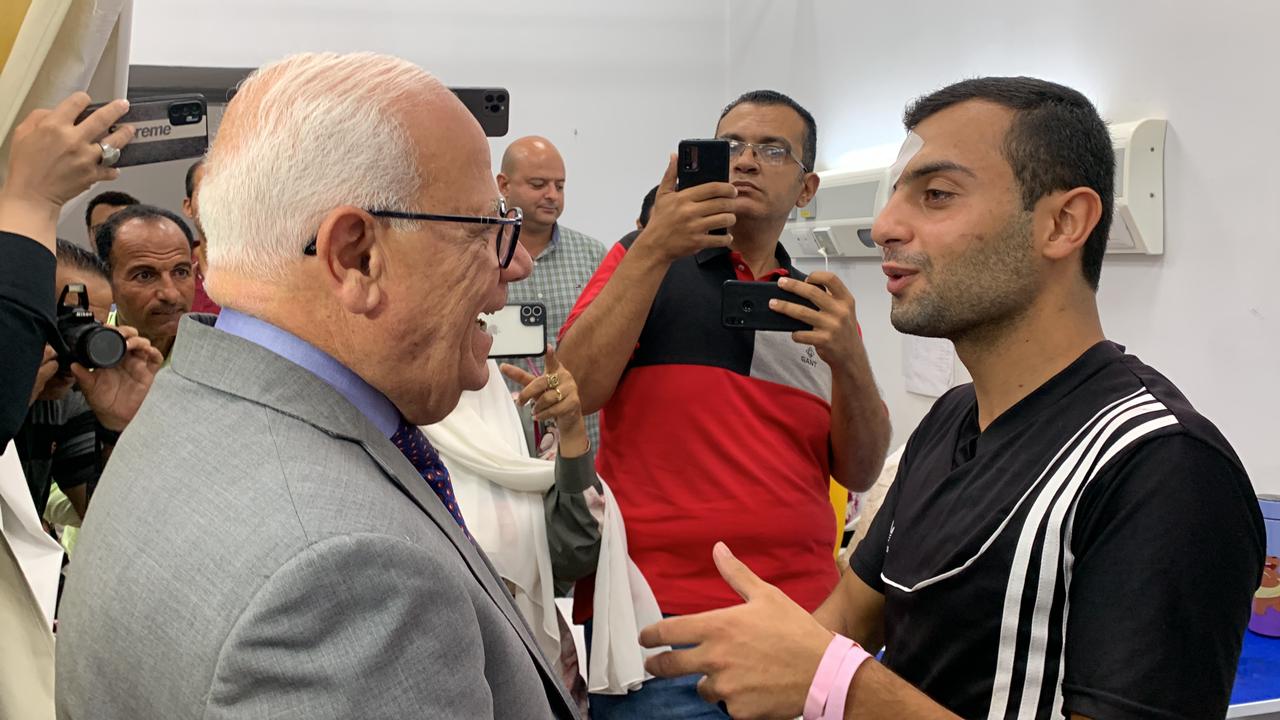 وتحدث محافظ بورسعيد إلى أحد لاعبي الكرة المصابين في الحرب في غزة والذي يحصل علي علاجه بالمستشفى ببورسعيد، وأوضح له أنه في عمر لاعب المصري محمود وادي، وداعبه المحافظ: تعالي ألعب عندنا في النادي المصري، ورد اللاعب: أمضي من دلوقتي أنا جاهز.