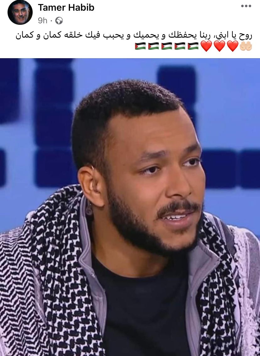 تامر حبيب يشيد بتصريحات ويجز عن القضية الفلسطينية: ربنا يحبب فيك خلقه