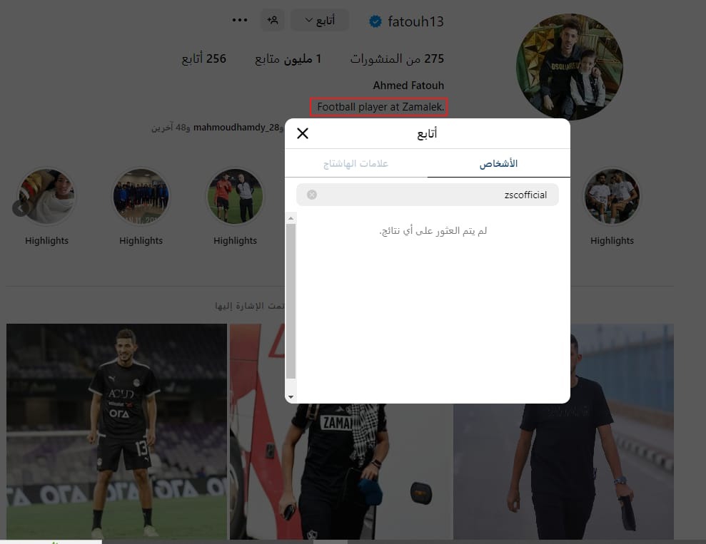 أحمد فتوح يحذف اسم الزمالك من إنستجرام