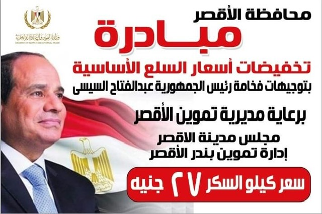 وأشار بيان لمديرية التموين، إلى أنه ستمرارا لمبادرة تخفيض أسعار السلع الرئيسية قامت مديرية التموين بالأقصر بإمداد المدينة بكمية من السكر سعر الكيلو 27 للمستهلك ليتم الإشراف على توزيعها بمعرفة مفتشي التموين ومجلس المدينة.