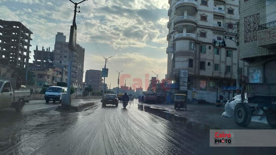 تجمعات مياه في شوارع كفر الشيخ بعد سقوط أمطار غزيرة