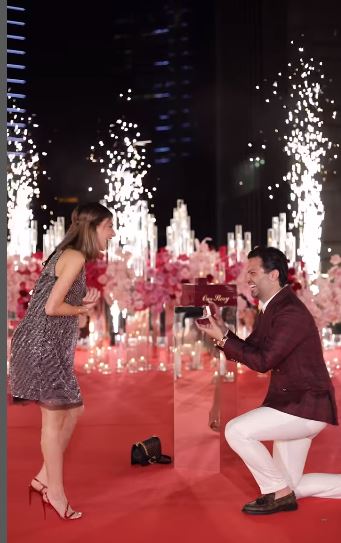 ونشرت نارين بيوتي، عبر صفحتها الشخصية بموقع تبادل الصور انستجرام، مقطع فيديو تشويقي، من عرض طلب الزواج والذي خطط له خطيبها، حيث تضمن أجواء مبهجة من مكان تزين بطريقة ساحرة.