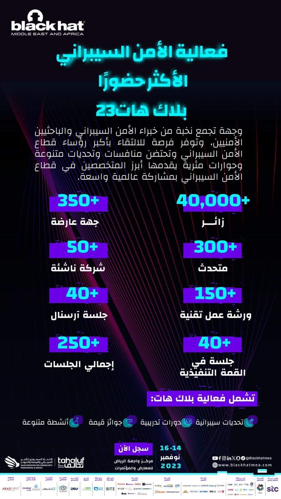 وشارك فريق من طلاب برنامج الأمن السيبراني وتحليلات البيانات بكلية الهندسة الإليكترونية بمنوف ممثلا لجامعة المنوفية فى تصفيات مسابقة بلاك هات 23 الدولية المتخصصة فى مجال الأمن السيبرانى وتحليلات البيانات، والتي أقيمت خلال الفترة من 14 إلى 16 نوفمبر بمدينة الرياض بالمملكة العربية السعودية، بمركز واجهة الرياض للمعارض والمؤتمرات برعاية الاتحاد السعودي للأمن السيبراني والبرمجة والدرونز برئاسة السيد فيصل الخميسي، حيث شارك فيها أبرز الشخصيات والشركات المتخصصة في مجال الأمن السيبراني على مستوى العالم.