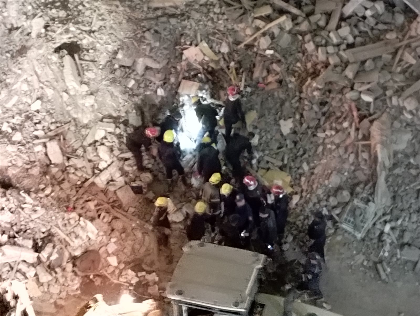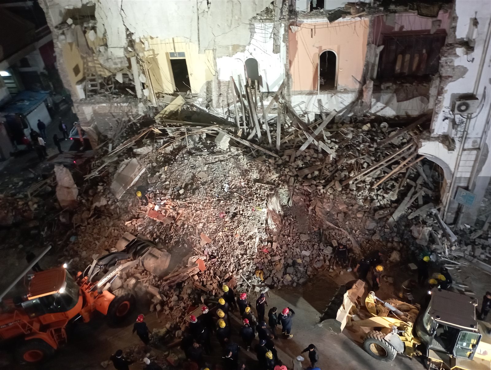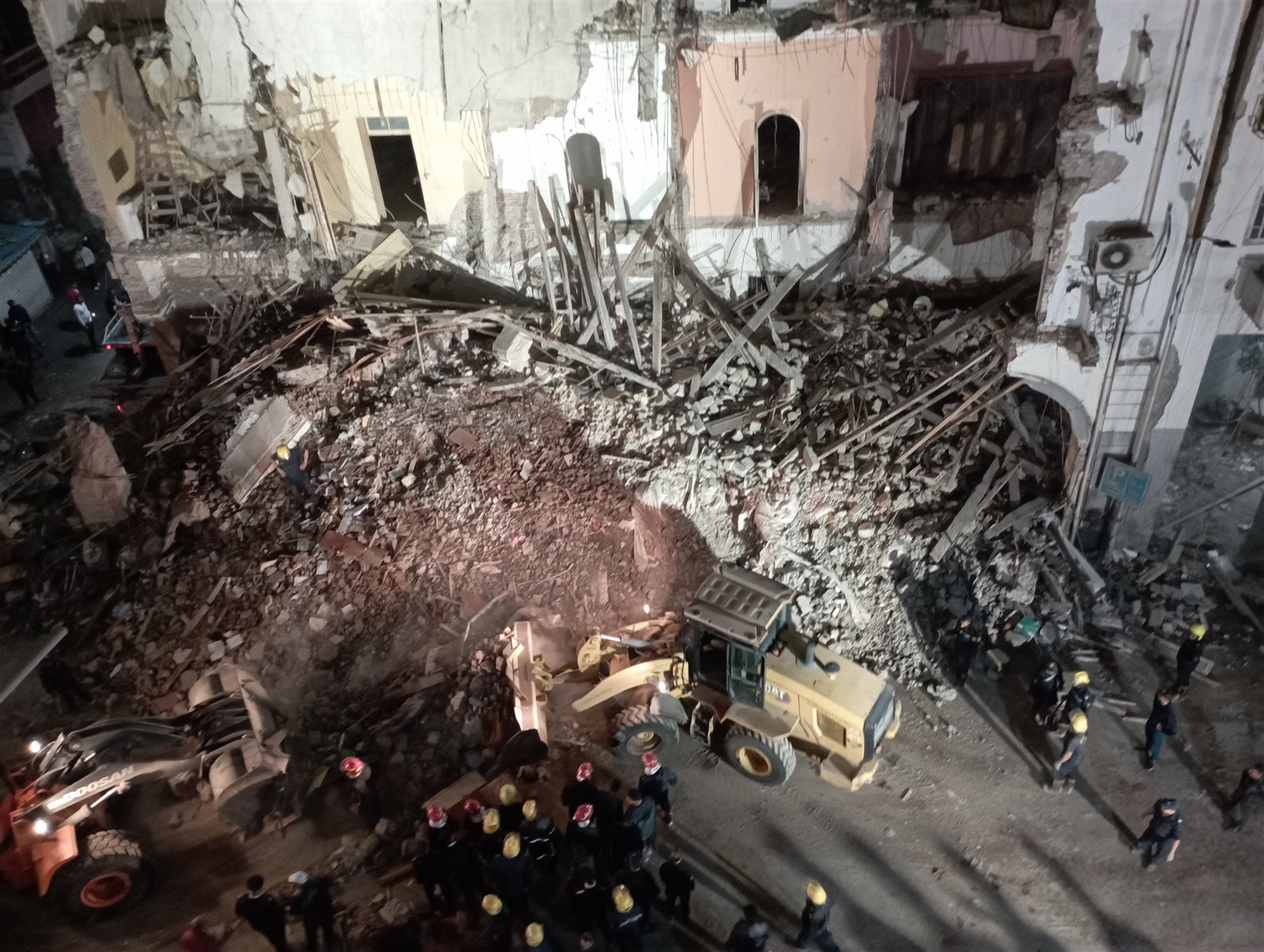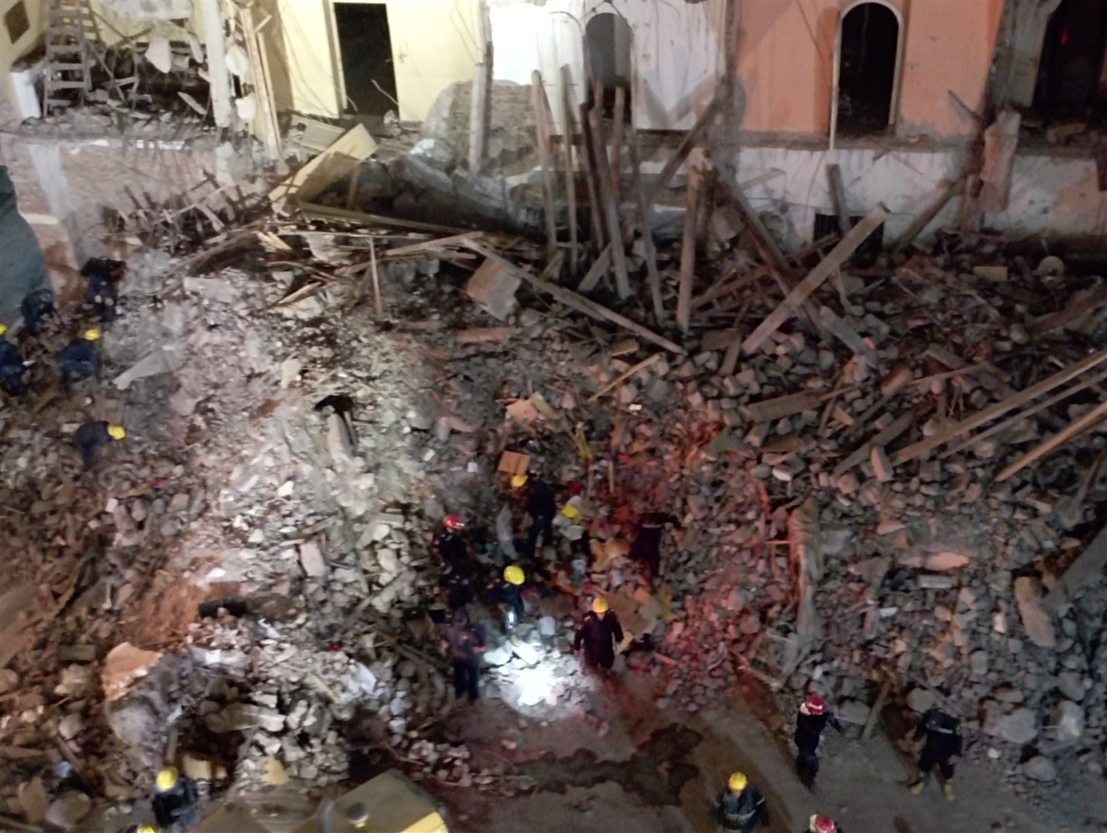 وتكثف الأجهزة الأمنية ورجال الحماية المدنية من جهود العثور علي الجثامين التي لا تزال تحت الأنقاض، وذلك وسط تواجد لأسرهم، ووسط حالة من الحزن والأسي التي خيمت على المحافظة.