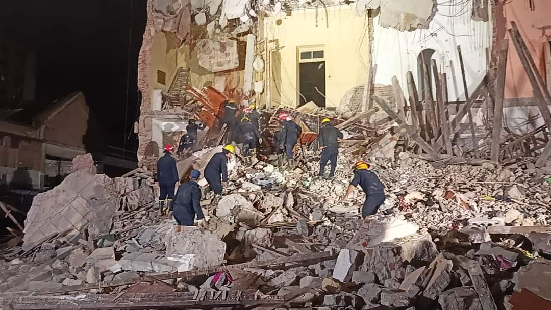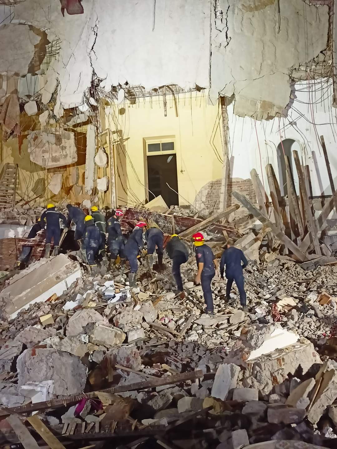 مصرع أب ونجليه تحت حطام العقار المنهار ببورسعيد