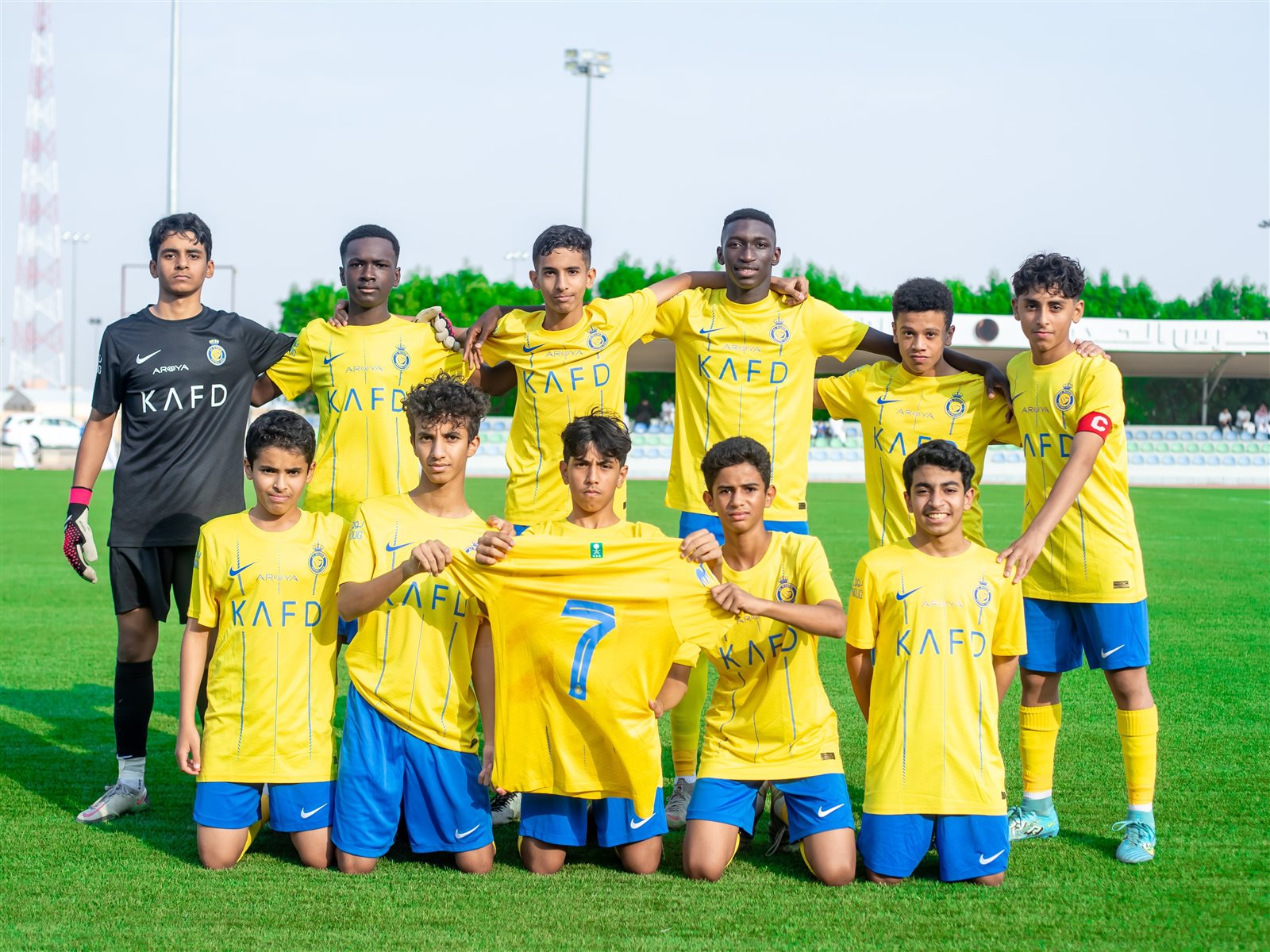 وقبل بدأ اللقاء رفع فريق براعم النصر، قميص كريستيانو جونيور، خلال الجلسة التصويرية لفريق قيل بدأ مباراتهم امام نادي الهلال بالدوري.