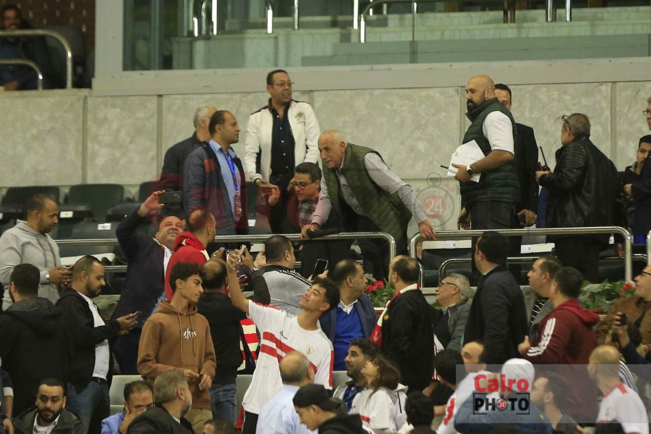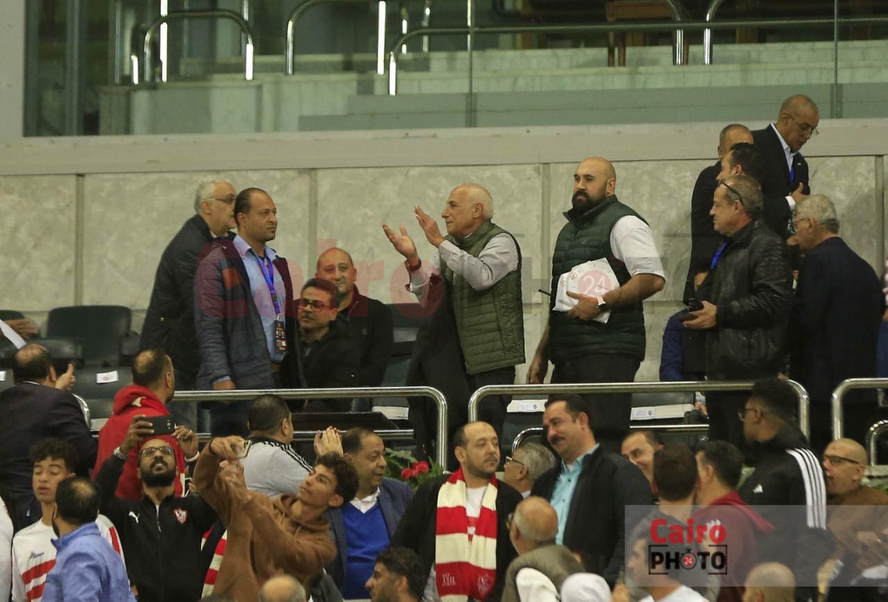 وحرصت الجماهير المتواجدة في مدرجات ستاد برج العرب، على توجيه التحية لـ حسين لبيب رئيس نادي الزمالك.