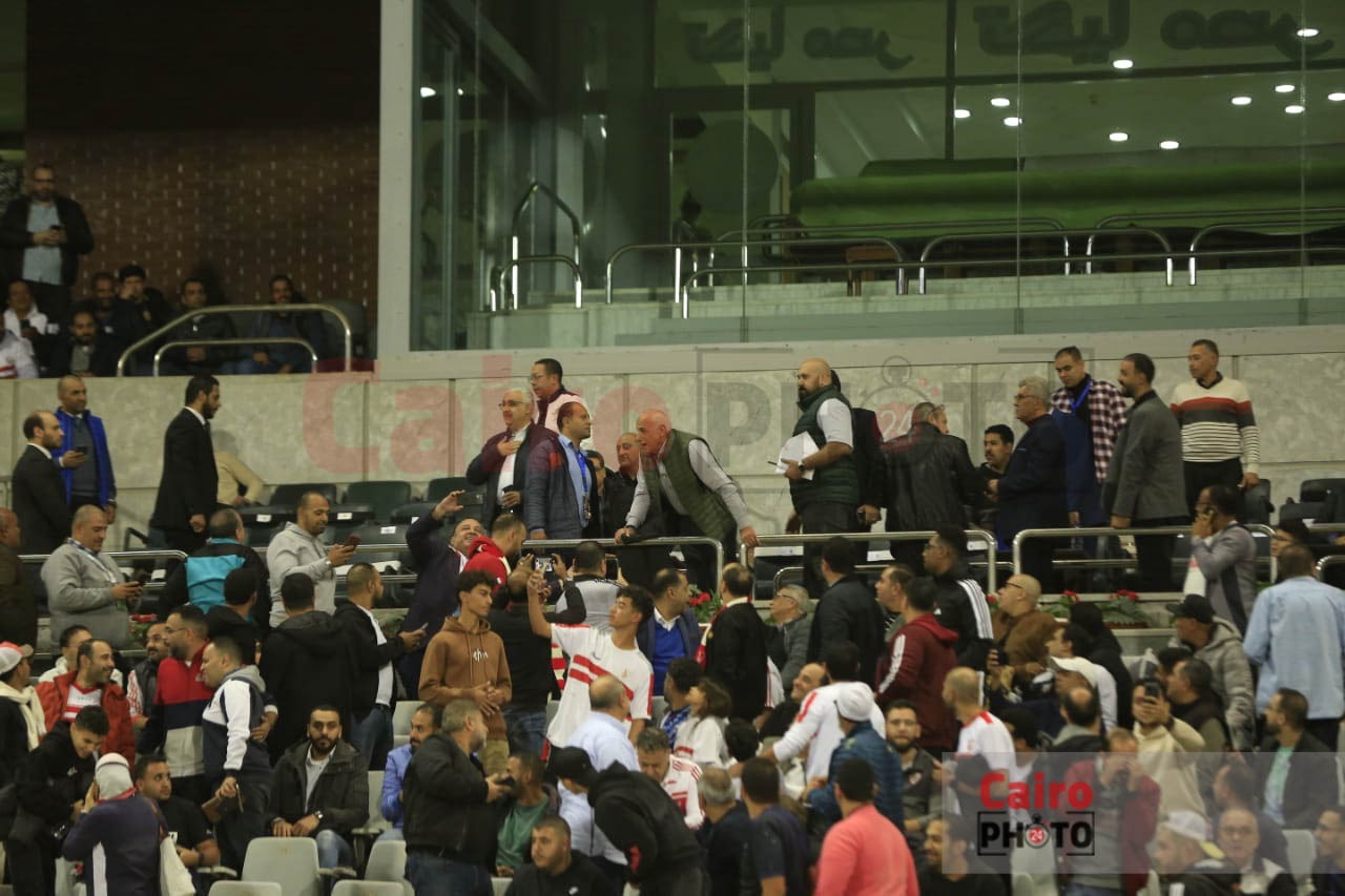 مجلس الزمالك يؤازر اللاعبين في مقصورة برج العرب خلال مواجهة أبو سليم